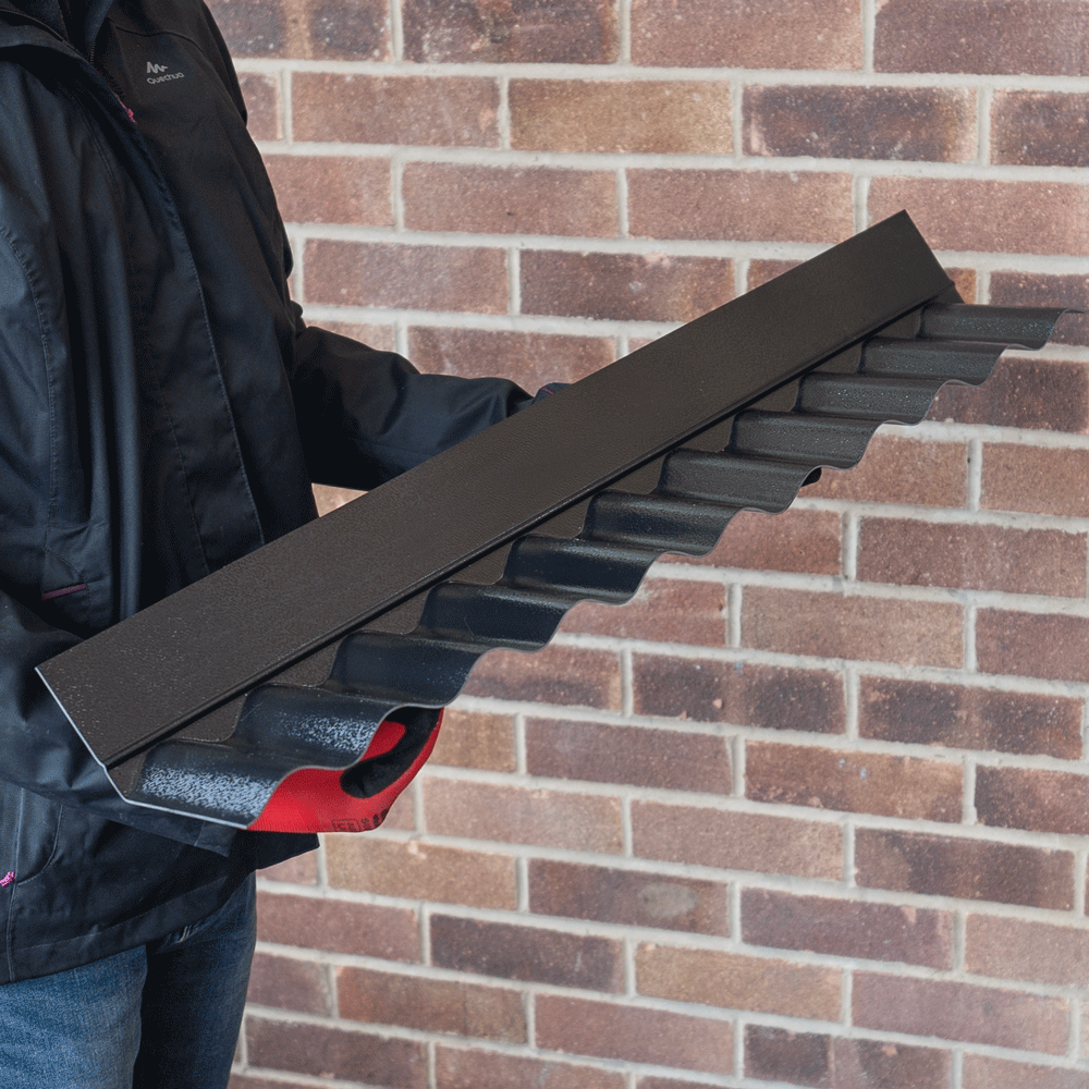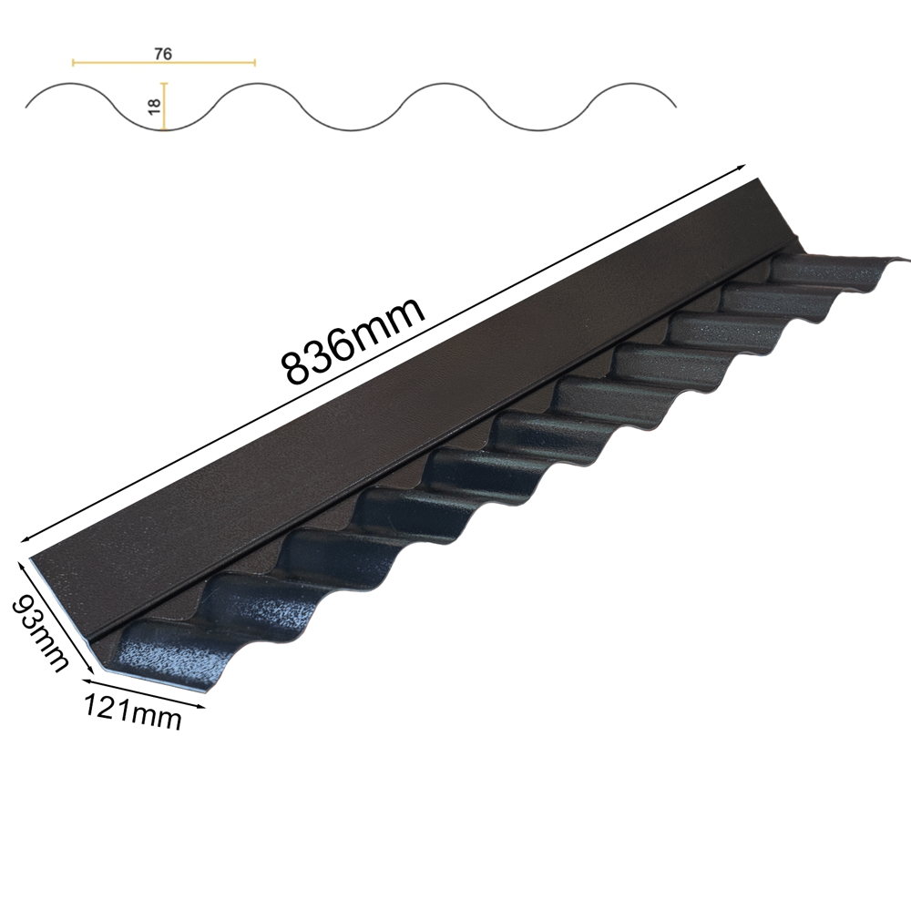 Ensure a perfect, professional finish for your roofing projects with our Black PVC Wall Flashing, specifically designed for CorruPlast® corrugated roofing sheets with a 76/18 profile. Measuring 836mm, this high-quality, durable PVC flashing provides a seamless fit along walls, giving your carports, canopies, or garden structures a neat, weatherproof finish.