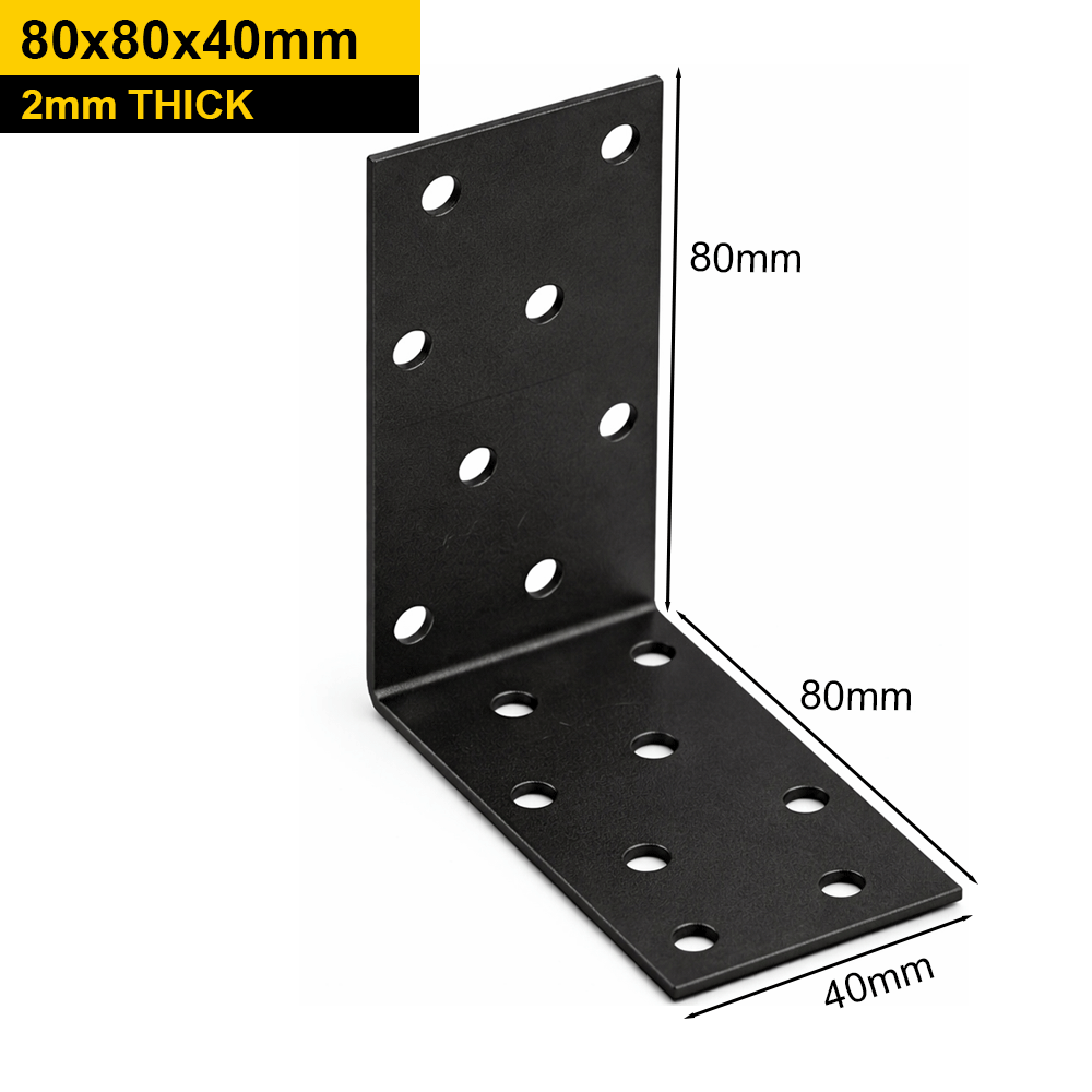 Heavy Duty Black Galvanised Steel Corner Angle Bracket – Timber Joining & Reinforcement Brace 80x80x40mm